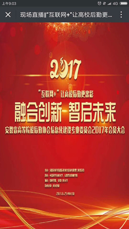祝賀安徽高校后勤信息化建設(shè)專業(yè)委員會成立大會勝利召開!安徽六合電子(遠控能源)將一如既往的投身于高校信息化建設(shè),源于教育、服務(wù)教育。做好人,做好事業(yè),做好朋友!